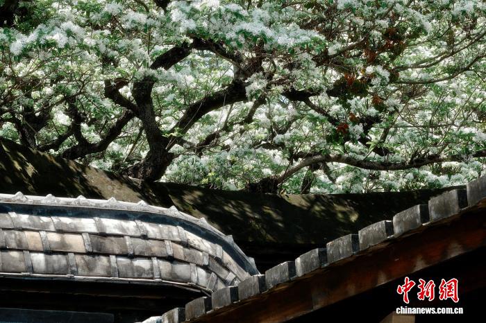 4月9日,祸州3坊7巷怒放的淌苏花。中新社记者 王东亮 摄